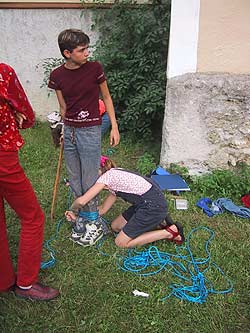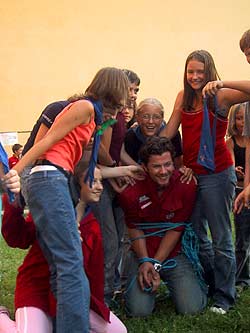 Zuvor gab es noch einen Jahrmarktbetrieb mit „um die Wette nageln“, wobei ein attraktives Bild kreiert wurde,mit ulkigen Fotos, für deren Realisierung Haggi extra seine Computeranlage mitgebracht hat, mit einem Pferdewettrennen, bei der wie in schlechten Krimis furchtbar viel betrogen und gemauschelt wurde und mit dem „Verkauf“ von „Krimskrams“, wo Göttin Fortuna ein bisschen im Spiel war.
