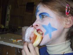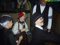 Wie jedes Jahr haben wir auch heuer wieder zu unserem Kinderfasching geladen. Unter dem Motto: "Stars in der Manage" fand am 1. Feber 2003 der erste Zirkus in den Kellergewölben unserer Gruppe statt. Obwohl man wenn man es genau betrachtet nicht der erste Zirkus in unserem Heim war, denn man könnte wenn man gehässig wäre auch die eine oder anderer Heimstunde öfters mal als Zirkus bezeichnen in dem wir die Leiter und die Leiterassistenten die Haupttrolle in der Figur des Clowns innehaben. Nun ja das nur nebenbei. Aber es waren nicht nur Clowns die an diesem Zirkusfestival teilnahmen sondern auch andere gestalten die bei einem solchen Event nicht fehlen dürfen wie Raubtiere, Zauberer, Raubtierbändiger, Zebras, Pandas, Elefanten, Akrobaten und noch viele mehr. Zuerst gab es einen Rundgang bei dem die Möglichkeit gegeben war hinter die Kulissen des Zirkus zu blicken. Man konnte bei einer Raubtierfütterung zusehen und danach selbst dem hungrigen Löwen Leo was zu Futtern geben (gemeint ist hier jedoch noch nicht das Krapfenessen) oder sich von einer Wahrsagerin die Zukunft vorhersagen lassen. Die wohl häufigste Frage "Was hab ich denn im Zeugnis ?" konnte jedoch nicht geklärt werden. Weiters konnte man sich in Geschicklichkeit beim Luftballonrasieren und Schoko-mit-Handschuhen-Hauben-Schal-und-Schibrille-essen üben. Dann kam die Raubtierfütterung die zweite: Ja jetzt stärkten sich unsere Jungstars der Manege mit Krapfen Schwedenbomben und Saft, bevor es zu Arbeit ging. Natürlich durfte nicht vergessen werden das es noch eine Abendvorstellung zum einstudieren gab. Es gab vier Höhepunkte: Die Seiltänzer die sich mit Eleganz und Mut auf einer 2 (0) cm dicken Bank bewegten, Clowns die uns alle mit ihren fröhlichen Gesichtern und Darbietungen zum lachen brachten, Zauber die uns mit ihren trickreichen Tricks in erstaunen versetzten und die Raubtiere die uns durch ihr Gebrüll in Angst und Schrecken versetzten. Dies war die Vorstellung, bevor dann alle nach Hause gingen in ihre Wohnwagen und sich von den Anstrengungen und Strapazen des Zirkusdaseins erholten.