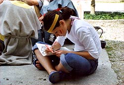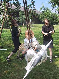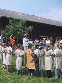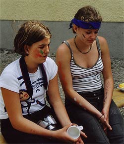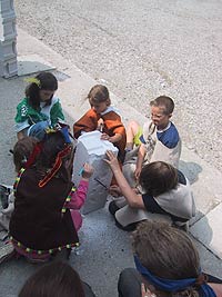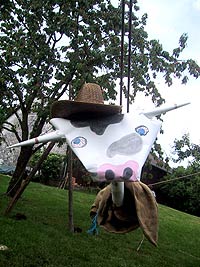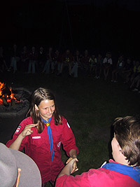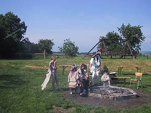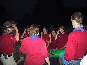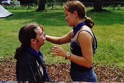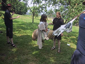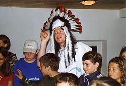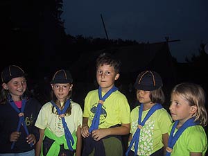 Es kommt heute nicht mehr oft vor, dass Schwarzgesichtsindianer, Rotaugenindianer, Cowboys und Girls, Barmaiden, Pianisten, Totengräber, Spieler und Nichtspieler, Banditen, Häuptlinge, Outlaws und Laws, Krieger und Viehzüchter für vier Tage zusammen kommen. Dennoch, heuer zu Pfingsten ist genau dies geschehen. Anlass dazu war der Besuch eines sehr bleichen Häuptlings namens Pfadsaug, der um sein Stammesheiligtum (einen gigantischen Goldklumpen), beschützen zu können ca. 30 mutige Indianer suchte. Die, so sollte sich herausstellen, waren schnell gefunden, aber wie diese Häuptlinge eben so sind, benötigte er einen Beweis für die Tapferkeit der Aushilfsindianer. Gesagt getan und schon zeigte man Geschick beim Lassowerfen und Totempfahlschnitzen, Mut beim Rodeoreiten auf einer wüsten Kuh und Geschmack beim Brotbacken am Lagerfeuer. Um aber auch auszusehen wie ein „Pfadianer“ wurde heftig Kriegsbemalung aufgetragen. Nach bestandenen Prüfungen wurde noch ein Eid abgelegt und schon war man ein echter Pfadianer. Abends aber geschah das Unfassbare. Dreiste Schurken überwältigten die Caexinesen Wachen und stahlen das Stammesheiligtum. Sofort nahmen die Pfadianer die Fährte auf und stellten einen der Banditen im Geäst eines rieseigen Baumes. Nichts wollte der Fiesling verraten, jedoch verriet er, dass eine Karte angefertigt worden war, wo der Schatz zu finden sei. Die Karte aber ist geviertelt und gut versteckt worden (man beachte wie flink Banditen sein können. Wachen überwältigen – Heiligtum stehlen – fliehen – Karte zeichnen und verstecken und weiter fliehen). Die vier Kartenteile fand man denn aber bald im Saloon bei Pianist, Totengräber, Spieler und Barmaid (Jonny Walker, Jim Beam, Jack Daniels und Glenn Fiddich). Nun war es ein leichtes den letzten Schurken aufzuspüren und ihm das Heiligtum zu entwenden. Letztlich war alles wieder in Stutenmilch und das letzte melancholische aufheulen eines Kojoten, kündigte eine ruhige Perienacht an. Weiter Highlights am Pfingstlager war das Geschirrloskochen am Lagerfeuer (auch wenn man sich dabei ein paar Schrammen zu zog, aber Pfadianer kennen bekanntlich keinen Schmerz), die zahlreichen Verleihungen (Versprechen, Sterne, Klassen, Kreise) und das obligate Lagerfeuer. Montags ging unser Treffen dann zu Ende, alle kehrten in ihre eigenen Tippis zurück und der eine oder die andere träumte diese Nacht von Bisons, Kojoten, den Geistern der Erde und von kleinen, braunen Lederschuhen.