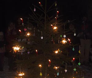 Am Ende des Adventskalenders gab es dann noch einen Christbaum, der mit dem, in den Fenstern versteckten Schmuck von allen dekoriert wurde.