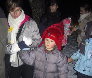 Am Weg erwarteteten uns 20 Fenster eines eher außergewöhnlichen Adventskalenders, in denen Lieder, Geschichten, Kekse, Bilder und Christbaumschmuck erwarteten. So wurde trotz zweistündiger Wanderung niemandem fad, ja gerade die kleineren unter uns hatten viel Spaß daran von einem Fenster zum nächsten zu laufen, um gespannt auf den Inhalt warten zu können.