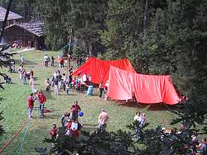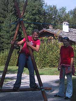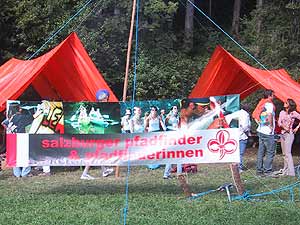 36 helfende Hände, schönes Wetter und die überaus freundlichen Leute vom Freilichtmuseum machten das Kinderfest zu einem großen Erfolg. Schon am Samstag machte sich eine kleine Gruppe Müllner auf nach Großgmain um alle nötigen Vorbereitungen zu treffen… es wurden Feuerstellen ausgehoben, A´s gebaut, eine Seilrutsche aufgezogen, eine Seilbrücke zusammen gezimmert, Planen gespannt und ein Fahnenmast aufgestellt, um am Sonntag gleich in aller Frühe los legen zu können. Und wirklich, schon um 9.00 Uhr kamen die ersten Besucher, die begeistert die Angebote der Pfadfinder nutzten. Neben guter Öffentlichkeitsarbeit haben wir wohl auch wieder einen großen Schritt in Richtung Teamwork und Zusammenhalt getan und ich möchte mich nochmals herzlich bei allen bedanken, die uns so tatkräftig unterstützt haben und diese Aktion erst möglich gemacht haben.