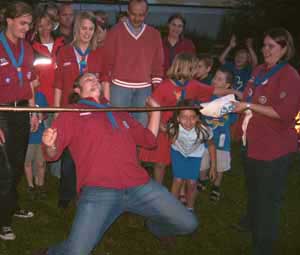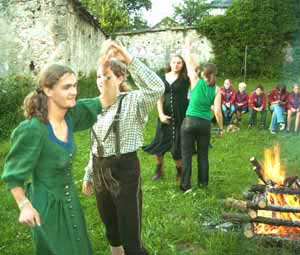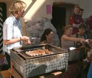 Im Hof gab es dann noch Bosna und Getränke, serviert von den CaEx und schließlich ein Lagerfeuer mit Jahresrückblick, Sketches, Seilziehen Leiter gegen Eltern (jede Mannschaft hat einmal gewonnen) und seltsamen Tänzen, bei der man entweder Gummimensch oder Fotograph (dann konnte man sich drücken) sein musste.