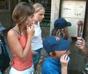 Diesmal mussten zwei gemischte Gruppen von Wichtel bis Uropa die Originale von diversen innerstädtischen Bildern finden, natürlich wettbewerbsmäßig. Zahlreiche Ablenkungen wie Eisstandl, Flirts mit Mirabellgartenzwergen und Einhörnern, Straßenkünstler und Händler kosteten natürlich wertvolle Hundertstelsekunden, aber schließlich gewannen doch die einen vor den anderen ganz knapp.