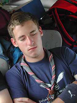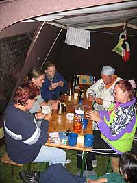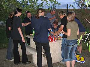 Richtig pfadfinderisch errichteten wir in Ballymahon unser Lager in der Wildnis, neben einem Flüsschen, in dem auch mehr oder weniger erfolgreich gefischt wurde. Am Abend vor unserer Abreise Richtung Dublin wurde selbstverständlich das obligatorische Lagerfeuer entzündet und es war uns eine besondere Freude zu dieser Gelegenheit Ingrid das Pfadfinderhalstuch verleihen zu dürfen.