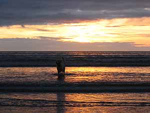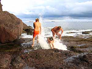 Bereits am Sonntag (8.8.04) trafen wir uns um den Gruppenbus zu beladen und alles für unser Irlandlager vor zu bereiten. Am Montag gegen 17.00 Uhr ging es schließlich los - Richtung Cherbourg (FRA), wo wir etwa 24 Stunden nach Abfahrt an Board der Normandy gingen. Das erste Guinnes genießend und auf ruhige See hoffend verbrachten wir einen gemütlichen Abend auf der Fähre und am Mittwoch schließlich waren wir in Irland angekommen. Eine kurze Wegstrecke über schmale irische Straßen stand uns bevor, ehe wir mit Andi und seiner Familie in Dunmore East zusammen trafen. Einige ganz Mutige wagten sogar ein Bad im durchaus kühlen Meer, während die anderen schon beim Anblick schlotterten. Ein herzhaftes Irish Stew, extra für uns „Neuankömmlinge“ gemacht, wärmte uns am Abend wieder auf. Der folgende Tag stand ganz unter dem Motto Entspannung, und so wurde geangelt, gelesen und die wunderschöne Umgebung erkundet.