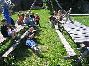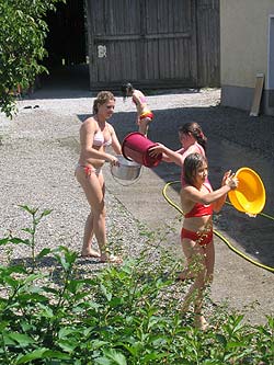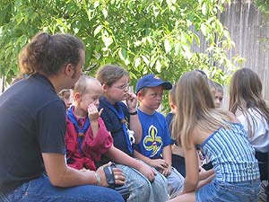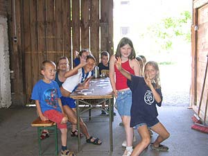 Auch die WI/WÖ fuhren heuer vom 17.07.2004 bis 24.07.2004 aufs Lipplgut. Dank des schönen Wetters war es uns möglich oft zu schwimmen oder eine lustige Wasserschlacht zu veranstalten. Wir bekamen Besuch von Geheimagenten oder etwa von dem weltberühmten Regisseur Osker Winner, der mit uns einen erfolgreichen Film über das wahre Pfadileben drehte. Doch dies sollte noch nicht alles sein, denn der gefürchtete Räuber Hotzenplotz konnte aus dem Gefängnis flüchten und nun war es an den Kindern ihn wieder zu fassen. So lernten sie Oberwachtmeister Dimpfelmoser, Kasperl, Sepperl, die Großmutter und auch den Zauberer Petrosilius Zwackelmann kennen. Von Kasperl und Sepperl lernten sie, was man auf einem Bauernhof alles so machen musste und von der Oma wie man gutes, vielleicht etwas zu salziges Brot bäckt. Am nächsten Tag erfuhren die Kinder, dass der Räuber Hotzenplotz die freundliche Großmutter entführt hatte. Sogleich machten sie sich auf die Suche nach ihr, fanden jedoch nur eine Lösegeldforderung und leere Seile um einen Baum. Kasperl und Sepperl gingen nach Hause um sich einen guten Plan einfallen zu lassen. Schließlich war es in der selben Nacht noch so weit und die Kinder gingen mit Polizeischutz in den Wald, überlisteten den Räuber und konnten die Großmutter befreien. Schon am folgenden Tag war es ihnen dann auch noch gelungen den Räuber wieder hinter Schloss und Riegel zu bringen.
