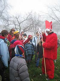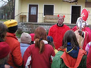 Nach diesem ereignisreichen Tag fielen alle müde ins Bett und schliefen „bald“ ein, um am nächsten Morgen (einige von uns auf wundersame Weise bunt gefärbt) gut gestärkt vom Frühstück das Lipplgut zu reinigen. Dann gings ab nach Hause, wo alle mit Spannung auf Nikolaus und Krampus warteten, die am nächsten Tag wieder versöhnt von Haus zu Haus zogen.