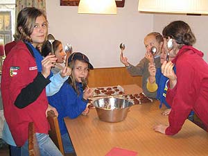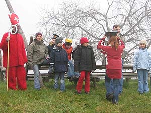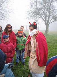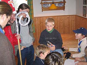 Den Nachmittag nutzten wir für Spiele und Erprobungen. Dann brachen die GuSp auf zum Krampuslauf nach Oberndorf, die WiWö zu einer besinnlichen Fackelwanderung. Nach dem Abendessen probten die WiWö eifrig an einer Überraschung, um den später heimkehrenden GuSp und Führern ein adventliches Krippenspiel unter Einsatz toller selbstgebastelter Kostüme und Requisiten aufzuführen.