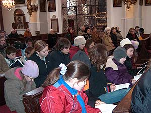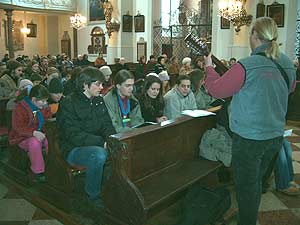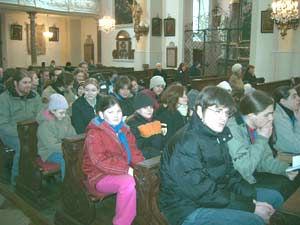 Da uns wegen des Einsatzes beim Adventmarkt in Hellbrunn die Beteiligung am letzten Müllner Christkönigfestes nicht möglich war, übernahmen wir die Gestaltung der Messe zum Fastensonntag am 6. März 2005. Weil die Weitergabe des Termins irgendwo stecken geblieben war, blieb uns nur wenig Zeit für die Organisation. Umso erfreulicher war, dass trotz sehr kurzfristiger Ankündigung eine sehr stattliche Müllner Abordnung die Kirche füllte. Unter der Leitung unseres Kantors Haggi gab in schon gewohnter Weise unser Chor vorwiegend mit Werken des namhaften Salzburger Komponisten Christian Haggenmüller dem Gottesdienst einen festlichen Rahmen.