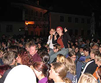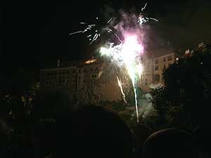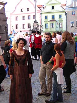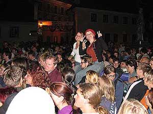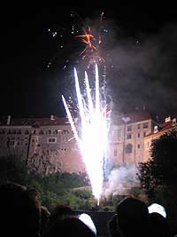 Von 17. bis 19. Juni stand ganz Krumau im Zeichen eines Mittelalterfestes, Grund genug für unsere Leiterinnen und Leiter einen Ausflug in die tschechische „Metropole“ zu unternehmen. Am Samstag, schon in aller Frühe, machten wir uns mit zwei Kleinbussen auf gen Česky Krumlov, wo wir ein wenig außerhalb in einem kleinen Hotel untergebracht waren. Das Mittagessen im hoteleigenen Restaurant gestaltete sich etwas abenteuerlich – was wohl unter anderem auf die sprachlichen Barrieren zurück geführt werden kann - nach 2 Stunden haben dann aber doch alle ihr Essen – oder zumindest irgendein Essen bekommen. Gestärkt und erholt machten wir uns schließlich auf den Weg ins Stadtzentrum von Krumau, wo sich schon riesige Menschentrauben durch die engen Gassen schoben. Einige unserer Führer taten es den Einheimischen gleich und legten mittelalterliche Gewandung an um sich ganz standesgemäß unters Volk zu mischen. Ein mittelalterlicher Jahrmarkt, eine Falknershow, eine große Veranstaltungsbühne und viele andere Sehenswürdigkeiten ließen die Zeit wie im Fluge vergehen und nach einem üppigen Abendessen entschieden wir, uns noch den einen oder anderen Cocktail zu genehmigen, ehe wir den Höhepunkt des Abends – ein eindrucksvolles Feuerwerk - auf uns wirken ließen.
