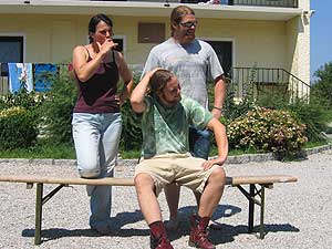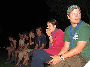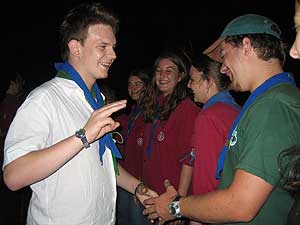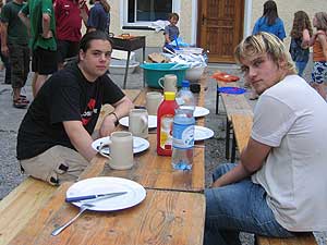 Ein beinahe noch erfreulicheres Ereignis (das Einberufen des ersten Schubtrunals in der Geschichte der RaRo ist sehr wohl als erfreulich an zu sehen – jedenfalls für die Richterschaft) dieses Sommerlagers war die erste Roverwache in Haggis und meiner RaRo Führerzeit. Dani und Sophie machten sich - für alle Eventualitäten gerüstet – auf den Weg und kamen müde aber zufrieden am nächsten Morgen wieder von ihrer Wache zurück. Selbstredend wurden sie von den restlichen RaRo gebührlich empfangen.