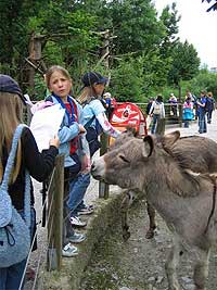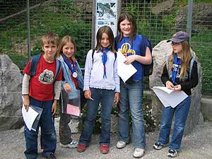 Am Samstag, den 4. Juni 2005, trafen sich die WiWö im Zoo Hellbrunn, um gemeinsam zu einer Expedition ins Tierreich aufzubrechen. Auf dem Weg durch die verschiedenen Kontinente galt es, die Tiere und ihre Lebensräume genau zu beobachten, um einige schwierige Fragen zu beantworten und somit den Professor von Biologiestudentin Sarah bei seiner Arbeit zu unterstützen. Da Forschen eine anstrengende Sache ist, stärkten wir uns zwischendurch bei einer Jause und im Streichelzoo hatten die WiWö die Gelegenheit, die Tiere etwas näher kennen zu lernen und auch zu füttern.