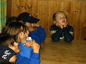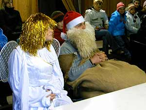 Dass es sich hierbei um eine falsche Annahme handelte, sollte sich am Adventlager der Wi/Wö und Gu/Sp auf jeden Fall noch herausstellen. Da der Weihnachtsmann der Weihnachtsmann-GmbH hilflos ausgeliefert war, er hatte einen Knebelvertrag unterschrieben, kam es zur Entführung des Christkindes durch zwei Bonzen ebendieser GmbH. Für die Kinder hieß es nun Phantombilder des Christkindes zu zeichnen als auch die Bonzen zu überwältigen. Zum Glück suchte uns nicht nur der Weihnachtsmann auf, der seine komplett kaputte rot-weiße Arbeitskleidung gegen Lumpen und Juttesäcke eintauschen musste, auf. Im Schlepptau hatte er ein Elite-Kampf-Wichtel, das den Kindern sehr hilfreich zur Seite stand mit Tricks und Tipps zur Überwältigung der GmbH-Bonzen. Als schließlich das Christkind befreit war und auch der Knebelvertrag auftauchte, auf dem plötzlich handschriftliche Notizen der GmbH gefunden wurden, dass bereits andere „Geschenke-Überbringer“ wie z. B.: die italienische Hexe „La Befana“ oder auch die Heiligen Drei Könige, die in Spanien die Kinder beschenken, bereits beseitigt wurden, kam es schlussendlich zum Äußersten: zu einer Verhandlung am nationalen und internationalen Weihnachtsgericht mit der ehrenwerten und neutralen Richterin Osterhase. Die Bonzen in Vertretung der GmbH mussten sich verteidigen und wurden nach einigen Zeugenaussagen zur Mitarbeit in der Osterhasenfabrik verurteilt, der Weihnachtsmann dankte den Kindern und auch das Christkind drängte zum Aufbruch, da Weihnachten ja bekanntlich schon vor der Türe steht.