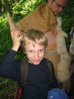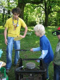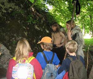 Während wir in der Steinzeit mit Naturmaterialien bastelten und Versteinern mit Steinzeitmenschen spielten, feierten wir in der Antike griechische Hochzeit und amüsierten die römische Kaiserin mit Wagenrennen. Im Mittelalter kamen wir zu einem Magier mit dem wir Zaubertränke brauten, spielten mit einem Zwerg und wurden letztendlich noch zu Rittern geschlagen. Nachdem wir nun schon die ersten sechs Ersatzteile gefunden hatten, verbrachten wir die Mittagspause im strahlenden Sonnenschein. Nach der wohl verdienten Mittagspause kamen wir in den Wilden Westen wo wir vom Indianer Großer Bär und seinem Gehilfen, dem kleinen Bären einen Regentanz lernten und mit den Cowboys unsere Treffsicherheit beim Dosen schießen trainierten. Nun reisten wir wieder in die Gegenwart zurück, dort halfen wir zwei Archäologen bei ihren Ausgrabungen und backten mit den Oberndorfer Pfadfindern Palatschinken. Zu guter Letzt durchkletterten wir in der Zukunft noch ein Cybernetz und lösten so viele Fragen wie möglich beim 1,2 oder 3 Quiz.