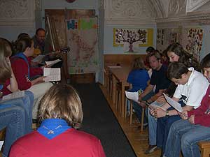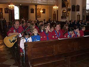 Sei es wie auch immer, wegen der Umstellung auf deutsche Lieder waren mehrere Proben erforderlich, die letzte eine Stunde vor Beginn der Messe, was aber auch Morgenmuffel nicht abhalten konnte.