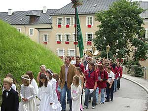 Wie jedes Jahr beteiligte sich auch heuer wieder eine erhebliche Abordnung Müllner Pfadfinder an der traditionellen Prozession über den Mönchsberg. Neben dieser Abordnung waren außerdem noch Ministranten, Erstkommunikanten und pfarrliche Mitarbeiter pfadfinderlich infiltriert.