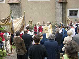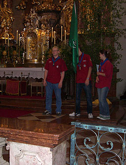 Wie schon die letzten Jahre übernahmen wir einen Teil der musikalischen Umrahmung. Neu war allerdings die Auflage, dass wir keine englischen Lieder verwenden sollten, weil das „die Leute nicht verstehen“. Überraschend fanden wir allerdings, dass bei der Prozession sehr wohl lateinische Lieder verwendet wurden. Das lässt wohl den Schluss zu, dass die Prozessionsteilnehmer besser Latein als Englisch verstehen.