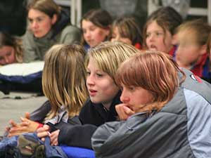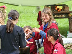 Während die WiWö mit einem Spieleabend das Lager einläuteten, waren die GuSp noch fleißig mit dem Zeltaufbau, die CaEx mit dem Bau einer Überdachung für ihre Ess- und Aufenthaltsmöglichkeit und die RaRo mit einer Besprechung, das Programm der nächsten Lagertage betreffend, beschäftigt.
