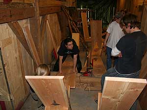Das Programm, das diesen Tag der RaRo ausfüllte, war ein Projekt, das auch in ihrem Heimstundenprogramm schon länger im Raum stand. Sie haben sich mit Holzbrettern und jede Menge Werkzeug ausgerüstet, sich ein ruhiges Plätzchen gesucht und sich der Aufgabe gestellt einen Sessel zu bauen, der gemütlich ist, gut aussieht und mit nur 2 Brettern, die per Steckverbindung zusammenhalten, realisiert werden kann.