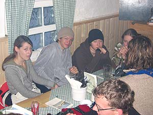 Wie jede gemütliche Stube, verleitete auch die Stube der Schafbachalm beim Zusammensitzen zu ganz ungezwungenem Plaudern. Dies gab vor allem uns Leitern die Möglichkeit auch den Eltern "unserer" Kinder näher zu kommen, sowie einige "brennende" Fragen zu klären.