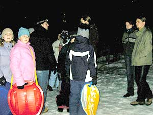 Die Heimstunde am 20.01.2006 galt ganz dem Schlittenfahren. Natürlich gab es auch einen „Sackerl-Stil-Wettbewerb, der aufgrund der vereisten Piste und der Finsternis natürlich unentschieden ausging. Besonderes Augenmerk gilt hierbei Silvi, die ihrerseits ein besonderes Bremsverfahren entwickelt hat. Die ganze Sache war lustig und kann durchaus wiederholt werden.