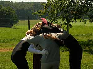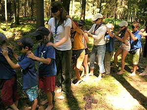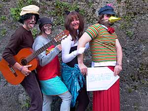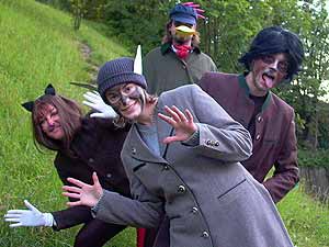 Am Montag begegneten wir Joe, dem Hund der Bremer Stadtmusikanten, der uns traurig von der Trennung seiner Band erzählte und uns bat, ihm beim Aufspüren der restlichen Drei und der Wiedervereinigung der Gruppe zu helfen. Noch am selben Tag fanden wir mit Hilfe eines Zeitungsartikels, einiger Flugzettel und eines Bekannten des Esels heraus, wo sich die Anderen aufhielten. Durch das Zusammensetzen alter Bandbilder zu einem Fotoalbum und das Singen des ersten Nr.1 Hits der Stadtmusikanten konnten wir den Esel Leonhard zurückgewinnen, beim arroganten Gockel Andre, der inzwischen mit einer erfolgreichen Solokarriere durchstartete, stießen wir hingegen auf Abweisung. Also versuchten wir unser Glück als nächstes bei Michelle, der Katze. Um ihr Vertrauen zu gewinnen bat sie uns im Briefwechsel einen gemeinen Schurken in einer sportlichen Wette zu überwältigen. Dank der Stärken jedes Einzelnen konnten wir den Bösewicht besiegen und Michelle zurückerobern. In einem weiteren Brief versprach sie uns Material um Andre zu überzeugen. Bösewichte, die dies jedoch verhindern wollten, entführten Michelle und wir mussten sie in einer gruseligen Nachtaktion befreien. Da alles zum Glück gut ausging konnten wir am nächsten Tag als letztes Andre den Gockel mit dem Material und durch unsere neuerliche Gesangseinlage für die Band und die ewige Freundschaft begeistern. Als Dank für unseren tapferen Einsatz schenkten uns die wiedervereinten Bremer Stadtmusikanten tolle T-Shirts und wir stärkten ihren Zusammenhalt mit verschiedenen Teamworkspielen.