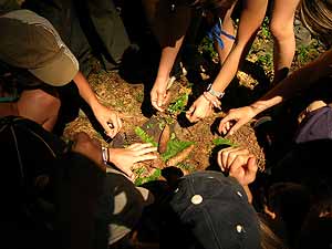 Den Sonntag verbrachten wir wie letztes Jahr am Bauernhof in Tarsdorf, wo wir diesmal in einem abwechslungsreichen Workshop den Wald genau erkundeten. Neben einem Pflanzenmandala, einem Bauminterview und einer langen Barfußraupe, durften wir zum Schluss als Höhepunkt live das Fällen eines Baumes miterleben. Zum Abschied wurde uns frisch gebackenen Waldprofis sogar noch ein Wichtelsessel geschenkt, der in einem Stück aus dem gefällten Baum gesägt wurde. Den Tag ließen wir mit einer besinnlichen Einheit ausklingen.