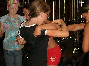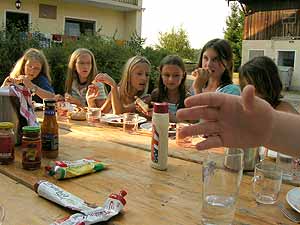 Am Nachmittag tobten wir uns bei Wasserspielen und einer großen Wasserschlacht aus und am Abend ließen wir bei einer rockigen Disco die Fetzen fliegen und schwingten das Tanzbein. Am Freitag widmeten wir uns Erprobungen und Lagerfeuerbeiträgen, die wir nach einem großen Grillfest beim Lagerfeuer bestaunen konnten.
