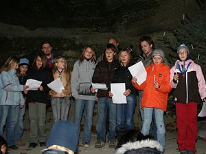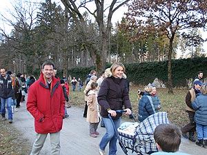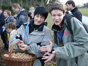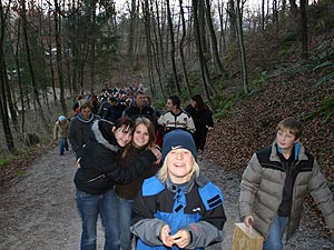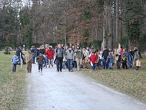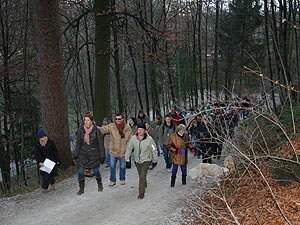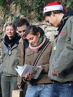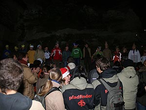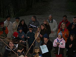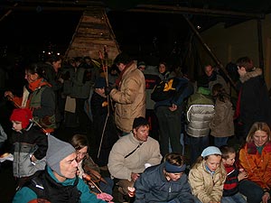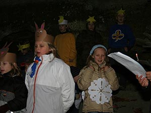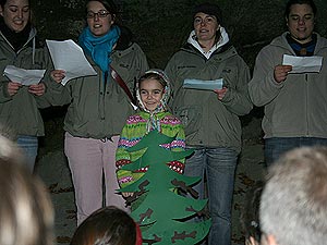 Am Samstag, dem 16. Dezember, trafen sich zahlreiche Müllner Pfadfinder in Begleitung von Omas, Opas, Mamas, Papas, sowie Geschwistern und auch Freunden zur alljährlichen Adventwanderung in Hellbrunn. Trotz frühlingshaften Temperaturen, die eher an den Osterhasen als ans Christkind denken ließen, gelang es den Caravells und Explorern mit Ihren liebevoll ausgewählten Stationen die meisten von uns in vorweihnachtliche Stimmung zu versetzten. Es wurden Weihnachtslieder gesungen und Geschichten vorgelesen, die teils zum Lachen teils zum Nachdenken anregten. Nüsse und Lebkuchen wurden verteilt. Auch Weihrauch und Kerzen trugen das ihrige bei, um die Vorfreude zu Weihnachten zu vergrößern. Im Steintheater angekommen bekamen wir von den Rangern und Rovern selbst gebastelte Tonfiguren, die wir anschließend mit netten Worten und Weihnachtswünschen einem anderen Menschen überreichten. Und ich glaube, wenn sich nur jeder über seine Tonfiguren und die damit verbundenen Wünschen halb so sehr gefreut hat wie ich, wäre damit bewiesen, dass auch der Beitrag der Ra/Ro sehr gut ausgewählt war. Schön langsam stieg zumindest bei den Wichtel und Wölflingen das Lampenfieber merklich. Aber bevor die Wi/Wö auf die Bühne durften überzeugten die Guides und Späher noch mit einer pantomimischen Darbietung zu einem von Wolfgang gelesenen Gedicht über das Wörtchen Advent. Außerdem präsentierten sie ihren persönlichen Beitrag, eine Pfadfinderlilie in den 4 Stufenfarben (gelb, grün, blau und rot), für unserer Gifts for Peace Aktion in Ecuador. Schließlich war es soweit, der Moment war gekommen auf den wir (die Wi/Wö) so lange gewartet und trainiert hatten. Es war Zeit für die Uraufführung unserer (selbst geschriebenen) Weihnachtsgeschichte „ Der kleine Tannenbaum“, die davon erzählt wie der kleine Tannenbaum mit Hilfe der Tiere des Waldes erfährt warum Weihnachten so eine ganz besondere Nacht ist. Nachdem der tosende Applaus verhallen war, machten wir uns auf den Weg, zurück zum Hellbrunner Adventmarkt. Dort konnten wir die Adventwanderung bei einem Becher Kinderpunsch und einer am Lagerfeuer gebratenen Knacker gemütlich ausklingen lassen, uns am Feuer wärmen und unsere leeren Bäuche füllen. Ich möchte allen, die bei der heurigen Adventwanderung mitgemacht haben von Herzen danken insbesondere den vier Stufen die durch ihre Zusammenarbeit die Adventwanderung zu dem gemacht haben was sie letztendlich war. Ein gelunges Ereignis auf der ganzen Linie. Ich freue mich schon auf das nächste Jahr und hoffe, dass es allen so gut gefallen hat wie mir.
