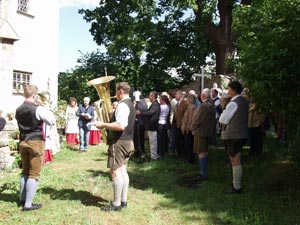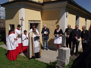 Großes Interesse weckte bei der Müllner Pfarrbevölkerung die Einweihung der „Hl. Kreuzkapelle“. Mit der Eröffnungsfanfare der „Salzburger Festtagsmusi“ begann das Fest. Nicht nur die Pfarrbevölkerung, sondern auch Ehrengäste wie Landtagspräsident Dr. Michael Neureiter fanden den Weg zur Einweihungsfeier.