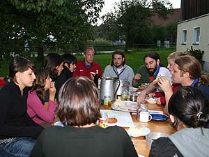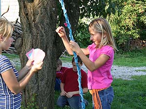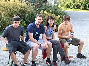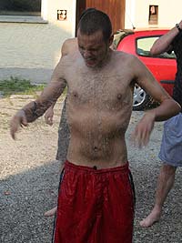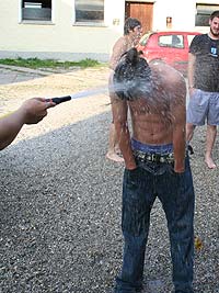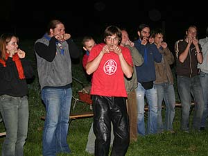 Da es heuer keine Überstellung zu den RaRo gab, war ernsthaft zu befürchten, dass es diesmal keinerlei Wasserspiele gäbe. Aber…. Beim Sommerlager in Schottland hatten einige RaRo tatsächlich das „Handbuch“ vergessen, ein wahrlich unverzeihlicher Verstoß gegen den Ehrencodex der Runde. Deshalb musste ein Schubtruhnal einberufen werden, dass nur zu einem gerechten Urteil finden konnte: Die Schuldigen wurden nass. Bedenklich findet der Schreiber dieser Zeilen allerdings, dass der Verteidiger zum Scharfrichter wurde, und dass die Aburteilung geradezu in volksfestartiger Stimmung verlief….