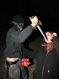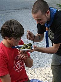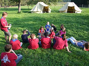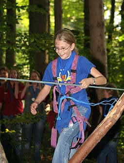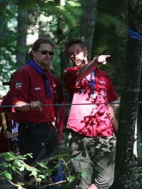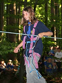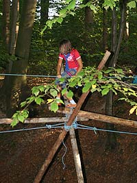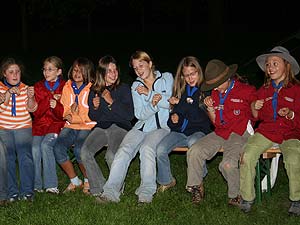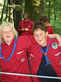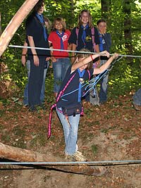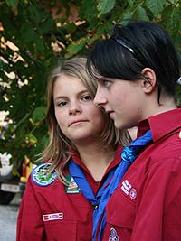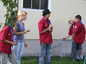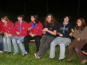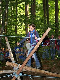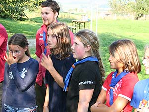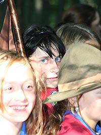 Wie immer gab es Überstellungen in eine andere Altersstufe und gute Gelegenheit die neue Gemeinschaft besser kennen zu lernen. Zuvor waren aber natürlich aufregende Abenteuer zu bestehen. So mussten die werdenden GuSp einen tiefen Graben über eine schmale wackelige Brücke überwinden, wobei sie von den Abschied nehmenden WiWö und den begrüßenden GuSp derart lautstark angefeuert wurden, dass es trotz des dichten Waldes kilometerweit zu hören war. Eine Reihe von Stationen war zu bewältigen, um die CaEx erreichen. Dabei trafen die Jung-CaEx auf äußerst zwielichtige und Furcht erregende Gestalten. Ja selbst dem Tod mussten sie ins Antlitz blicken.
