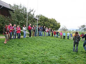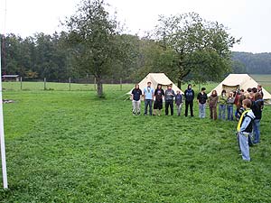 Vom Samstag, 30. September bis Sonntag, 1. Oktober holten wir bei unserem traditionellen Eröffnungslager gehörig Schwung für das neue Pfadfinderjahr. Erfreulicherweise nahmen sehr viele an diesem Schwungholen teil. Erfreulicherweise waren dabei etliche neue Gesichter zu sehen, die wir in unserer Gruppe herzlich willkommen heißen. Erfreulicherweise spielte auch das Wetter weitgehend mit, wenn auch wegen zeitweiligem Nieseln am Sonntagvormittag die Zelte leider nass blieben.