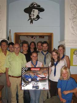 Im Rahmen einer Heimstunde wurden von den CaEx zum Thema Alkohol im Straßenverkehr Comics designed, Geschichten getippt und Bilder gezeichnet. Als Preis stand eine originale Carrera-Rennbahn in Aussicht. Nach einigen terminlichen Schwierigkeiten wurde von Rudolf Theierl, dem Kassier der Salzburger Pfadfinder, und Herrn Rauchegger den CaEx nun vergangene Heimstunde eine 8 m lange Carrera Rennbahn, gesponsert von Herrn Stadelbauer, feierlich überreicht und das Thema mit all seinen dunklen Seiten nochmals angesprochen.