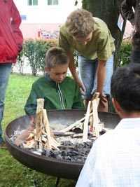 Glücklicherweise spielte auch das Wetter, das ursprünglich nicht so toll aussah, mit und so konnten viele der Kinder die wohl pfadfinderischste Station "Feuer machen" ebenfalls absolvieren.