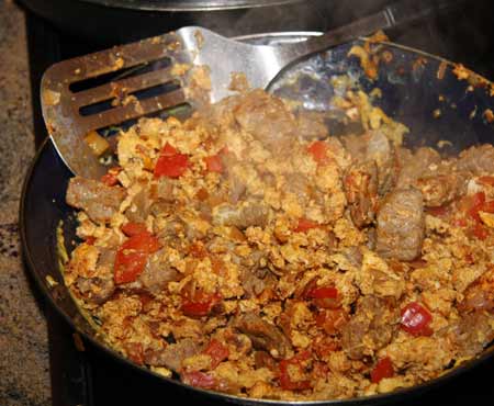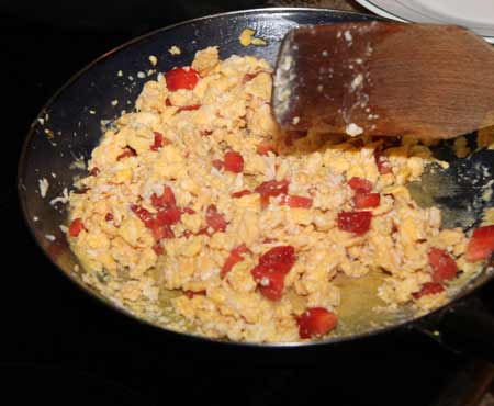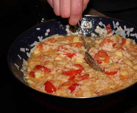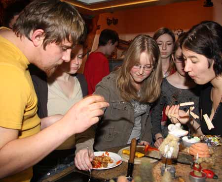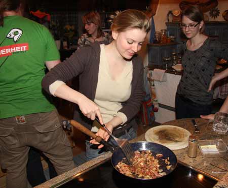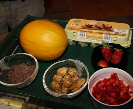 So wurde fleißig - unter ständiger Beobachtung der jeweils anderen Teams gekocht und es gab Eierspeis vom Feinsten. Die oben bereits erwähnte Kreativität ging von Eierspeis im Blätterteig gebacken über eine mexikanische Variante bis hin zur süßen Eierspeis in Melone. Die Teams bewerteten sich gegenseitig, wobei nicht nur Kreativität der Speise sondern auch Aussehen, Konsistenz, Präsentation, Dekoration und Sauberkeit in der Küche bewertet wurden.