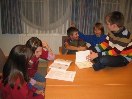 Die größeren GuSps nutzten nämlich den Zugang zum weltweiten Internetz und suchten passende Fotos, um anschließend eine Powerpointpräsentation zum Leben von Baden-Powell, dem Gründer der Pfadfinder, und der Entstehung unserer Bewegung zu erstellen. Die kleineren der GuSps hörten derweilen interessante Dinge über die Geschichte der Pfadfinder, die sie gleich im Anschluss daran in Form kleiner Theaterstücke kreativst umsetzten.