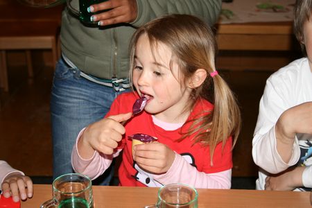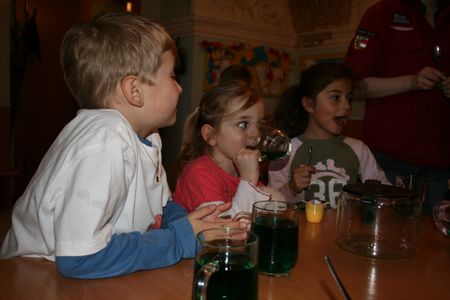 Die Heimstunde am 25. April 2008 stand ganz im Zeichen der Farben und so ging es sehr kunterbunt zu. Wir spielten lustige Spiele, sangen und zeichneten ein farbenfrohes Bild. Zur Stärkung gab es dann eine kleine bunte Jause mit grasgrünem Saft und schwarzen, grünen und blauen Fruchtzwergen zu essen, was man an den bunten Zungen erkennen konnte!