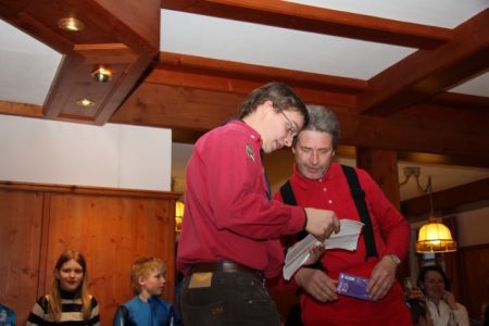 Zum sportlichen: Wie schon bei den letzten Meisterschaften waren die dominierenden Wintersportler wieder die Tennengauer und die Abtenauer. Wir Müllner - im Besonderen die etwas älteren Herren - waren eher die Spezialisten für die sogenannten Schokoladenplätze, und das bei höchsten Haltungsnoten. Aber wir hatten ja auch junge Damen. Sensationell gewann Lisa Müller ihre Altersklasse und brachte uns im Medaillenspiegel doch noch auf einen Spitzenplatz (Ergebnisse auf der Tennengauer Homepage www.pfadfinder-tennengau.at unter "Bilder").