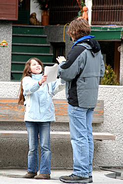 Ca. 13:55: Fragestunde („Müssen wir Schifahren?“) bzw. dritte hypochondrische Phase („ich hab mir den Fuß verstaucht! Ich bin Nosophobiker!!! -Ah geh?“)