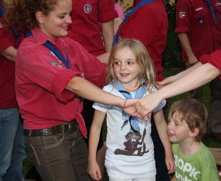 Besonders hervorzuheben ist außerdem noch das Pfadfinderversprechen, das die zu unser aller Freude neu zur Gruppe hinzugestoßene Biberleiterin Manu abgelegt hat.
