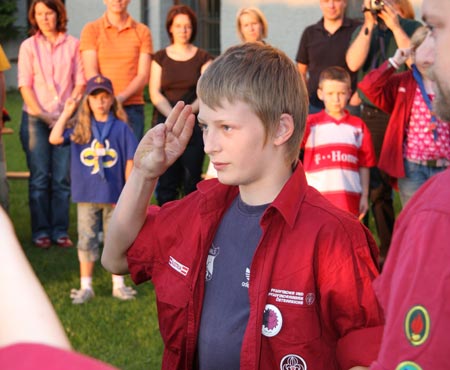 Flo, ein Späher unserer Gruppe, legte das Pfadfinderversprechen ab und wurde somit in die internationale Pfadfindergemeinschaft aufgenommen.
