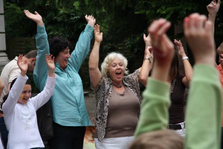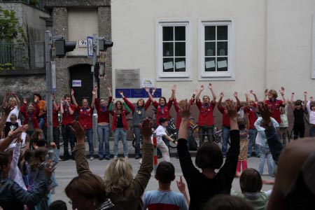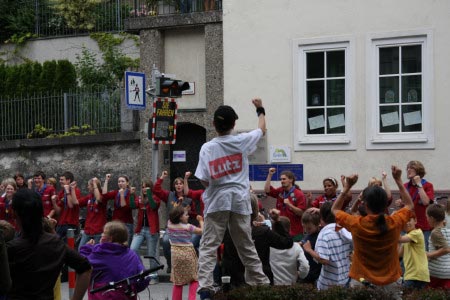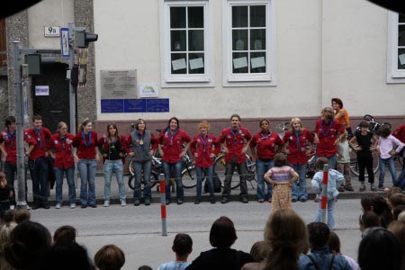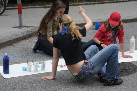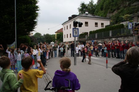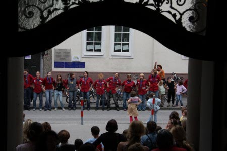 Abschließend gab es noch ein "Riesen Ala-Gatonga und einen "Bauer (Power) Bippenring" auf der Straße vor der Schule, die wieder extra für das Schulfest gesperrt war.