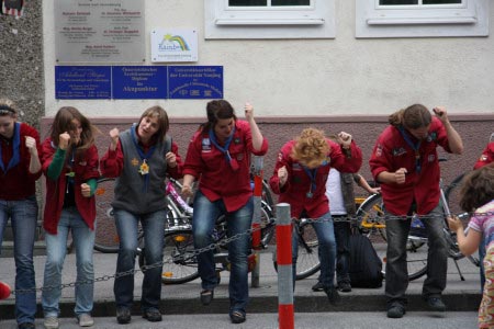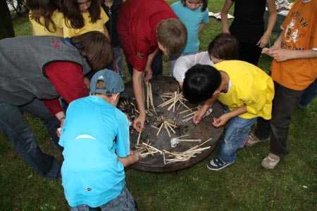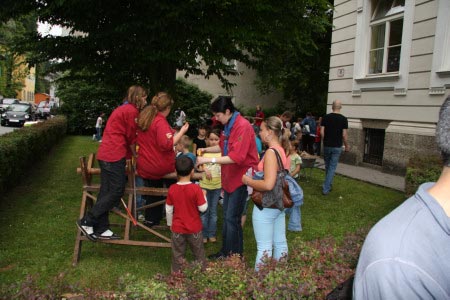 Bereits zum dritten Mal richteten wir heuer das Schulfest der Volksschule Mülln aus. Mit viel Personalaufwand (alles in Allem ca. 40 Müllner Pfadis) betreuten wir 13 Stationen von "sägen" über "Feuer machen" bis hin zur "Lavawelt" im Turnsaal. Der Ansturm war enorm!