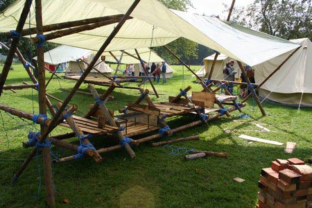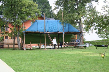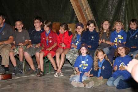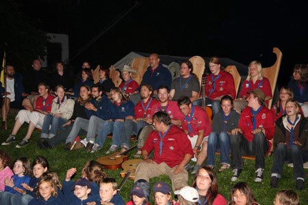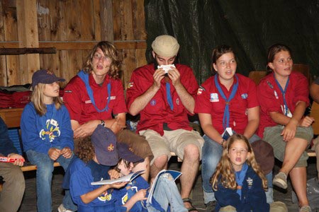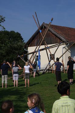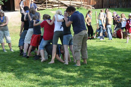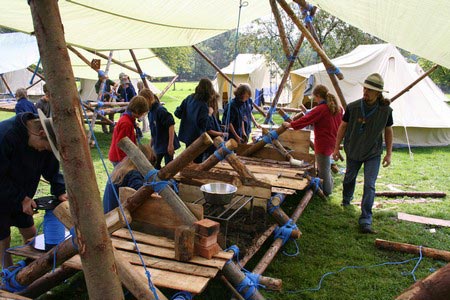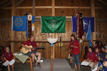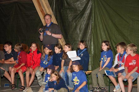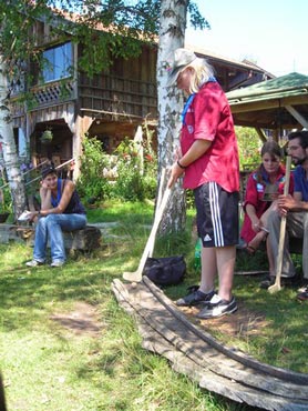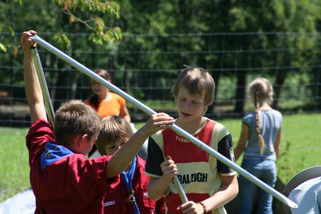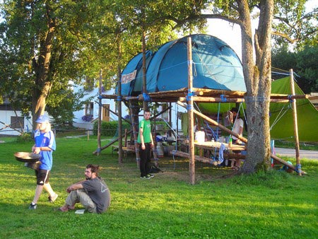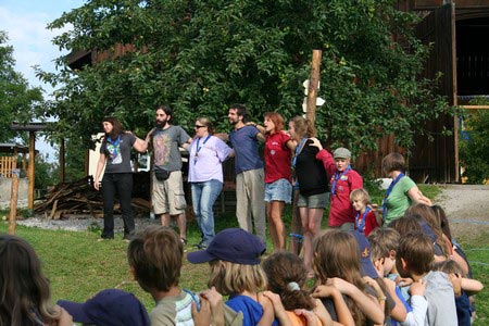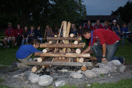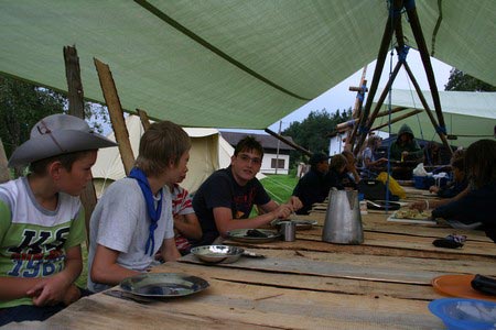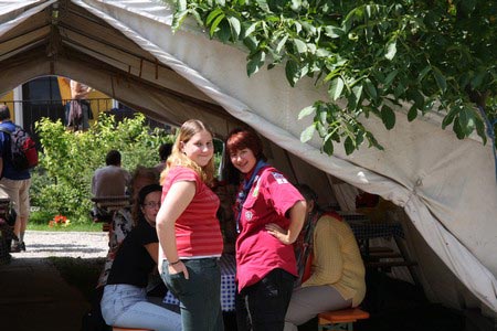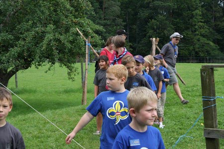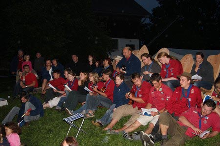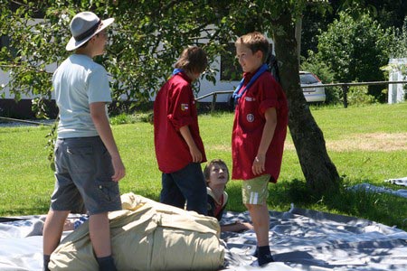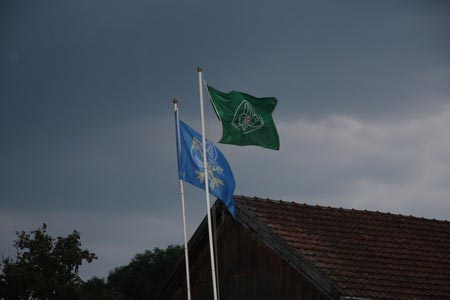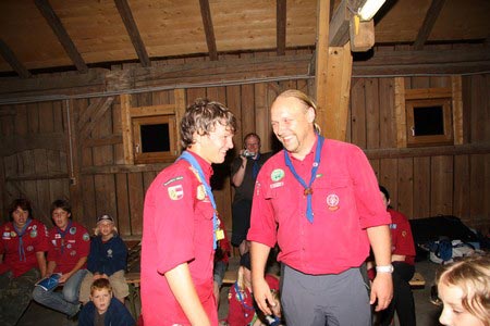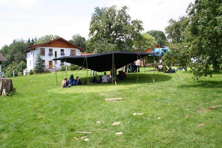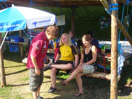 Der nächste Tag (Freitag) begann wiederum recht gemütlich mit Ausrasten vom Hike und stand ganz im Zeichen der letzten Vorbereitungen für unser Fest am Samstag. So wurde bei den GuSp noch eine englische Inspektion angesetzt, damit man endlich wieder mal alles im Zelt findet, Schwartlinge und Stangenholz verräumen, alles mögliche putzen und Hangar aufstellen um auch dem angesagten Schlechtwetter trotzen zu können.