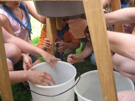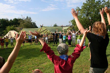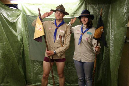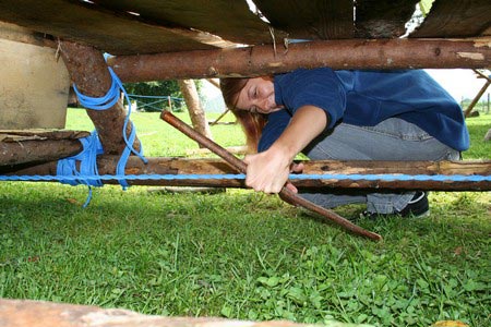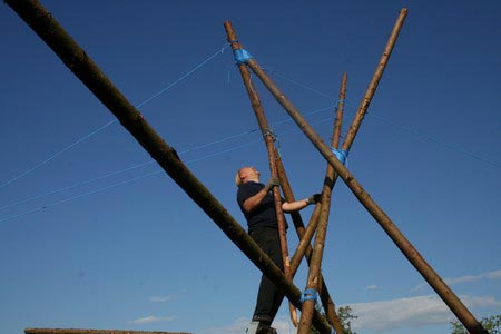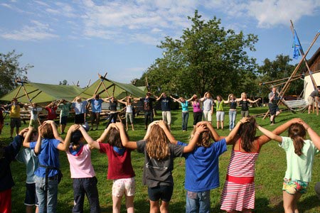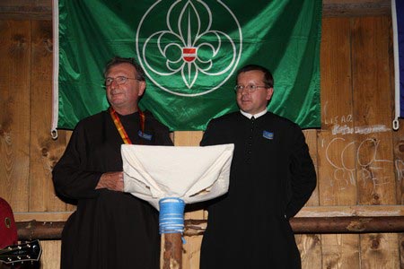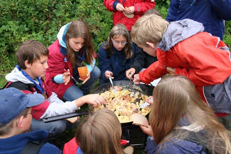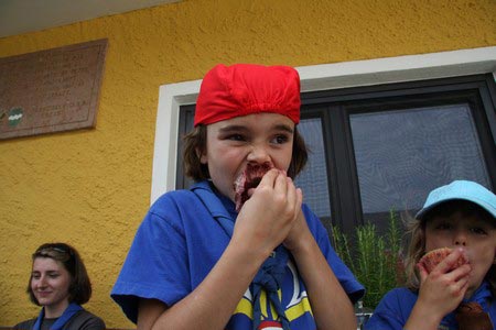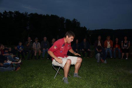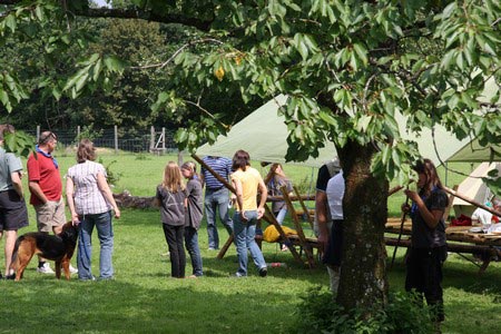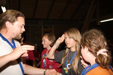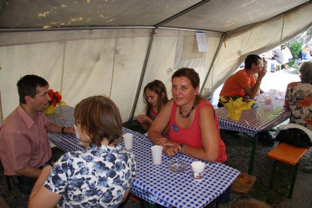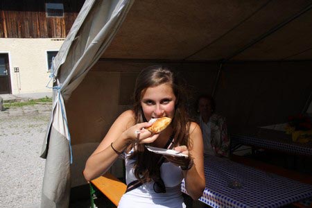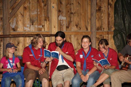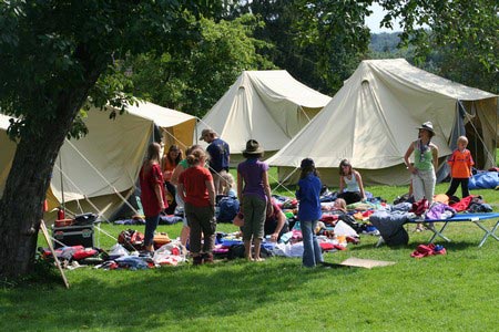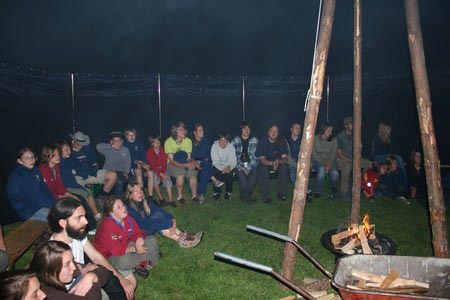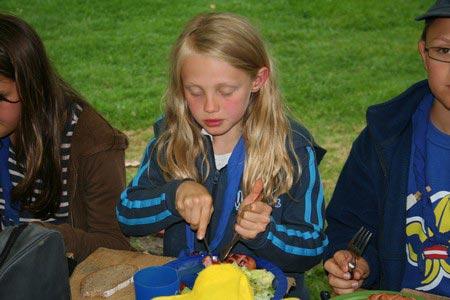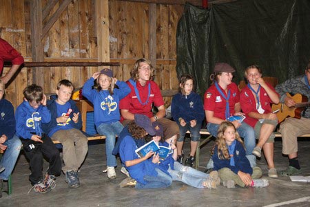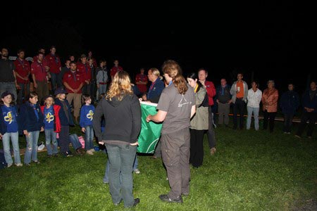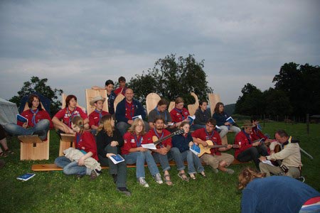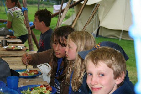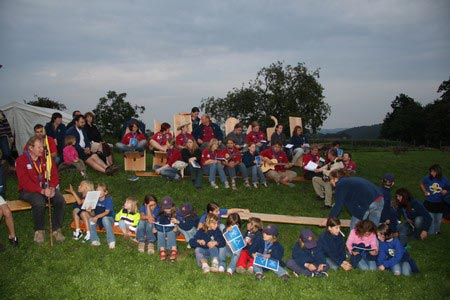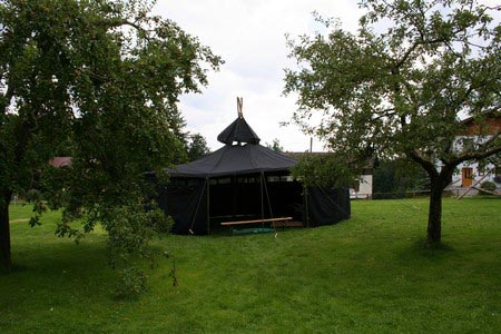 Der nächste Tag (Freitag) begann wiederum recht gemütlich mit Ausrasten vom Hike und stand ganz im Zeichen der letzten Vorbereitungen für unser Fest am Samstag. So wurde bei den GuSp noch eine englische Inspektion angesetzt, damit man endlich wieder mal alles im Zelt findet, Schwartlinge und Stangenholz verräumen, alles mögliche putzen und Hangar aufstellen um auch dem angesagten Schlechtwetter trotzen zu können.
