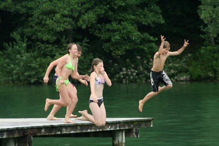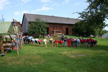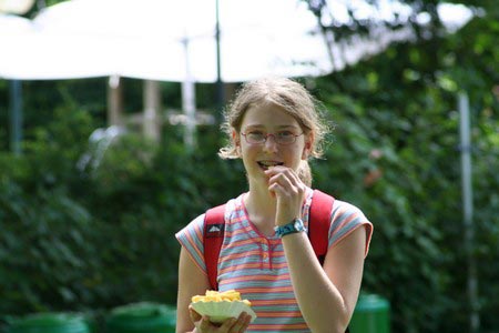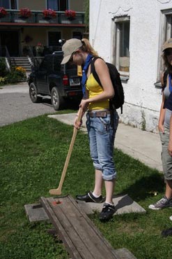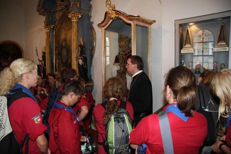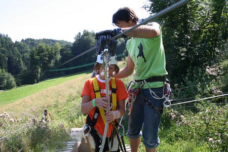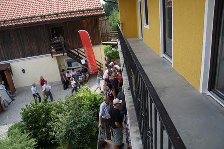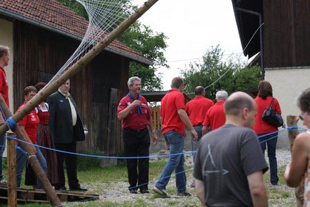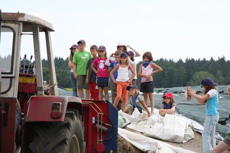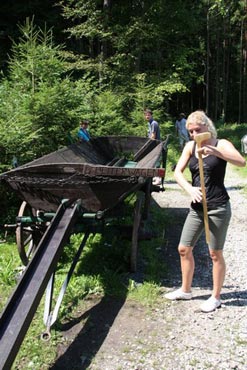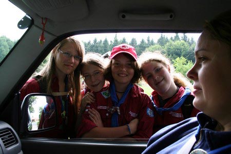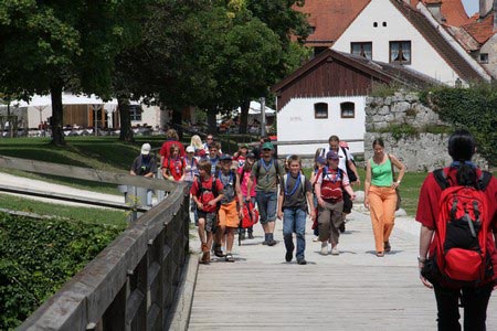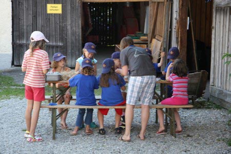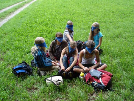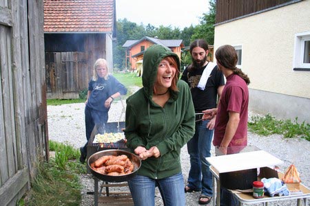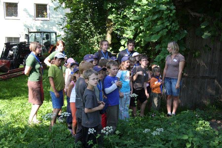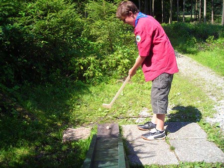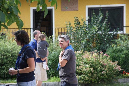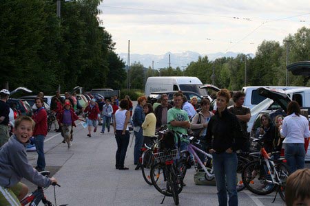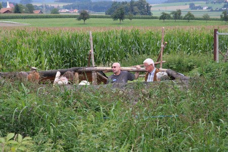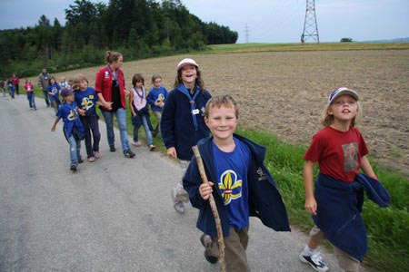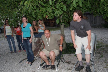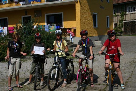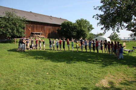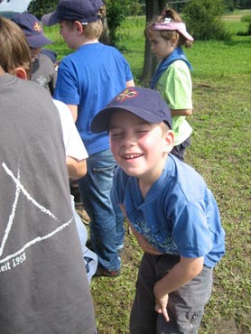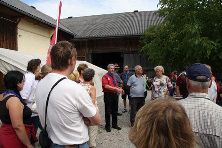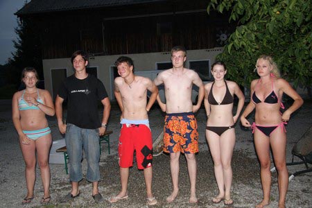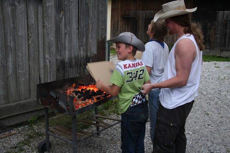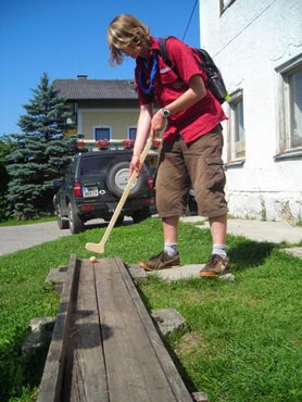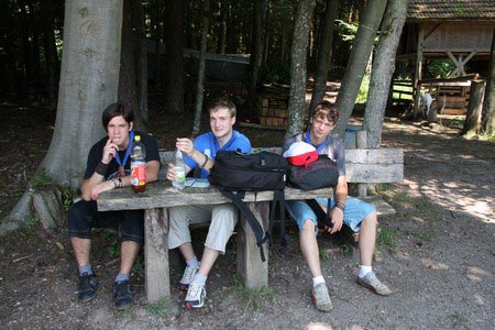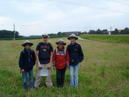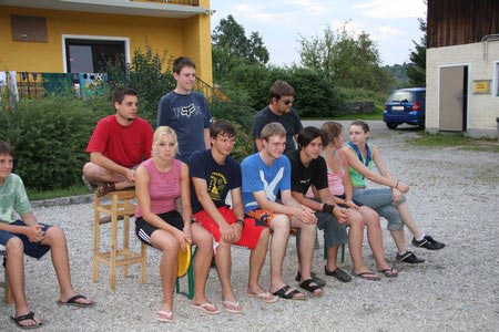 Besonders früh (6.00 Uhr) wurden die GuSp und CaEx geweckt um nicht zu lange in der Hitze zu wandern – so wäre es halt geplant gewesen, und beinahe unmenschlicherweise ;-) ohne Frühstück auf eine Tageswanderung durch die Wälder rund um den Huckinger See geschickt. Aber natürlich war gleich die erste Station (nur ein paar Gehminuten vom Lipplgut entfernt) „Frühstückmachen“ und natürlich auch anschließend die selbst gemachten Ham & Eggs zu vertilgen. Gut gestärkt ging es dann mit verschiedenen Stationen und Checkpoints durch die Oberösterreichische Landschaft. Ein gewisses Highlight war mit Sicherheit das Ortsschild einer kleinen Gemeinde, das wohl zu den meist fotografierten Objekten auf diesem Hike gehörte.