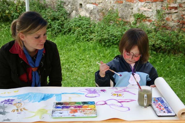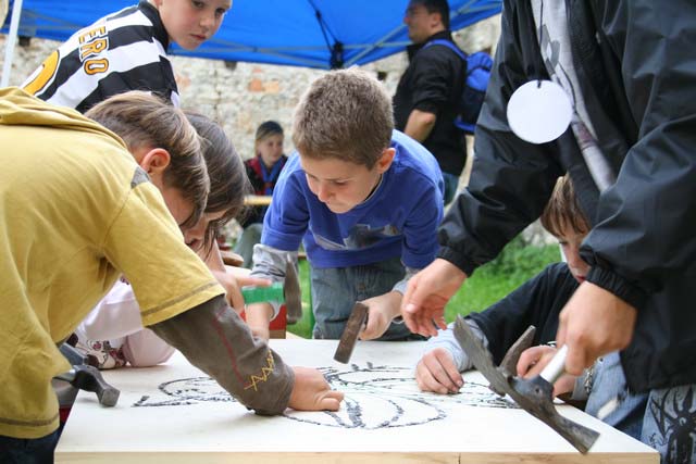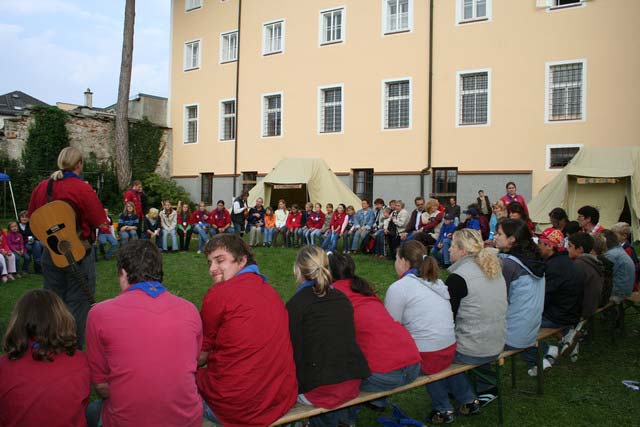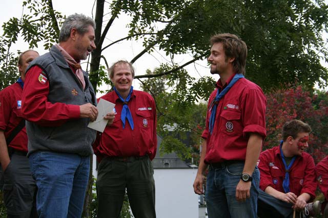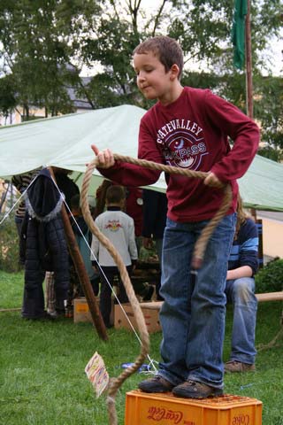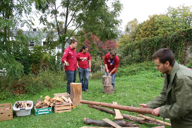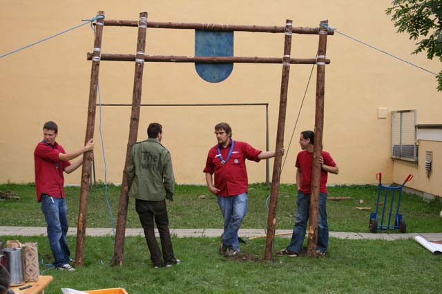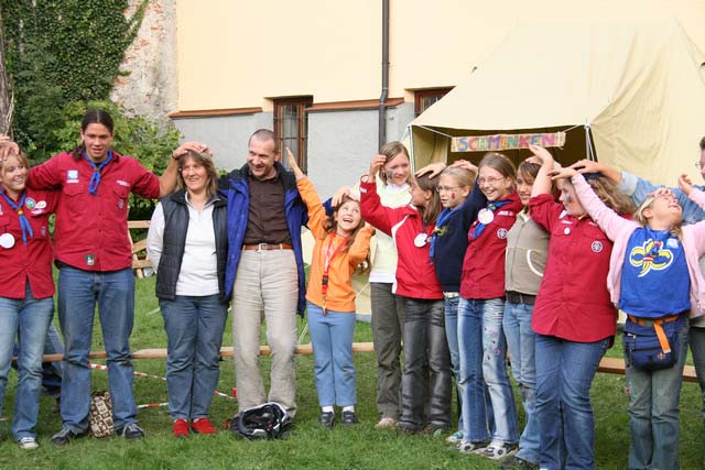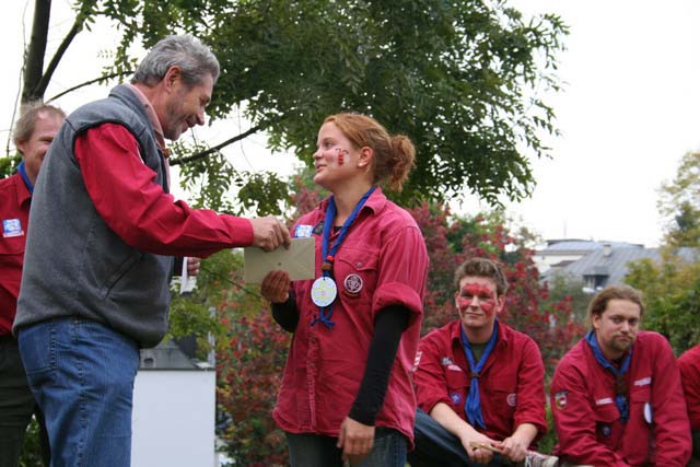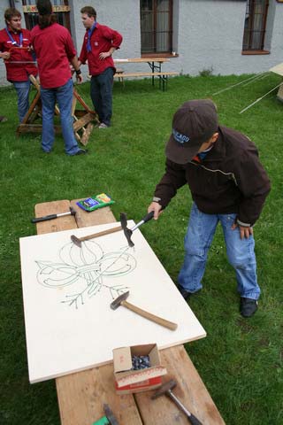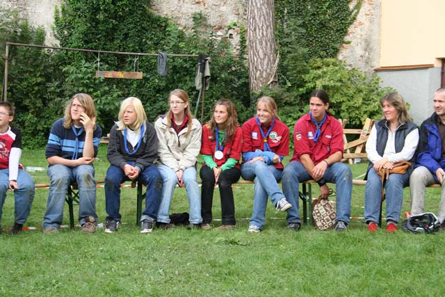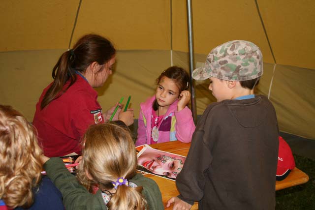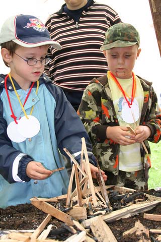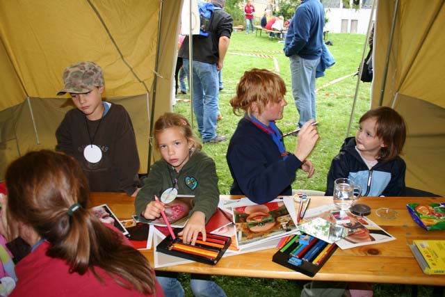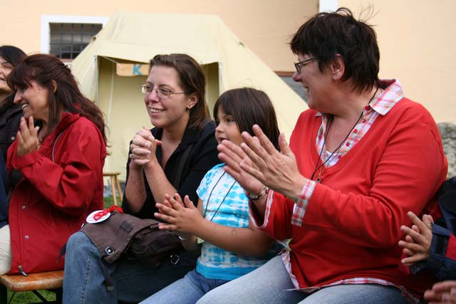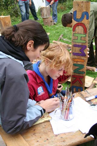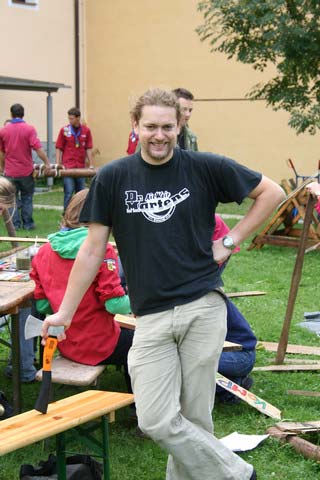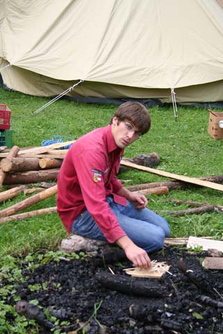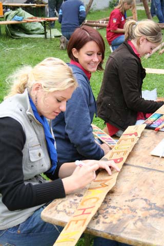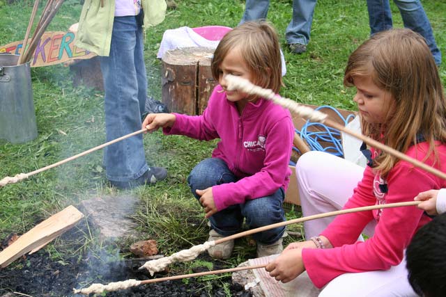 „Du sag mal, was macht ihr denn eigentlich so bei den Pfadfindern?“ Tja, eigentlich ein sehr gute und berechtigte Frage. Wir stellen Zelte auf und sind viel in der freien Natur?! Keine sehr erschöpfende Auskunft für jemanden, der keine Ahnung davon hat, was denn Pfadfinder nun wirklich so tun. Und deshalb fassten wir den Entschluss, heuer unseren ersten „Tag der offenen Tür“ zu veranstalten, wo wir in sehr pfadfinderischen Station zum Besten geben wollten, was wir unter Pfadfinderei so verstehen. Um ein möglichst großes Zielpublikum zu erreichen, verteilten wir bei unserer inzwischen jährlich wiederkehrenden Werbeaktion auch Flugblätter für den ersten „Tag der offenen Tür“, an dem vom Schauzelt und Merk-Kim über Feuermachen und Steckerlbrot auch Dinge wie Wettsägen, Sackhüpfen, Seilziehen und Kinder schminken dabei sein sollten. Kurz gesagt ein einfach pfadfinderisches Eröffnungsfest. Und so harrten wir der Dinge die da kommen sollten. Und es kamen tatsächlich sehr viele Kinder und Eltern, in deren faszinierten und interessierten Gesichtern wir den wahrscheinlichen Erfolg dieses Tages ablesen konnten. Einige fixe Anmeldungen und sehr viele Gespräche können wohl als Erfolg gesehen werden. Mit einem kurzen aber auch sehr gelungenen Lagerfeuer ließen wir diesen Tag ausklingen, der uns wohl noch lange in Erinnerung– und wir hoffen auch in der Erinnerung unserer Besucher – bleiben wird. Weiters hoffen wir, dass wir unseren Gästen mit diesem Tag nun auch hinlänglich erklären konnten, was denn nun Pfadfinder eigentlich so machen! Kurz: wir machen zusammen einfach tolle Dinge und entdecken und fördern unsere Fähigkeiten.