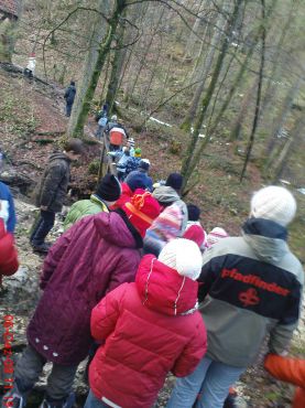 Nach einer tollen Nacht in den herrlichen Betten wurde dann mit einem ausgiebigen Frühstück einmal Kraft getankt. Nach einer Zimmerinspektion wollten wir ein bisschen Adventstimmung aufkommen lassen. Doch wir konnten gerade mal ein Lied ganz fertig singen als bei „Schneeflöckchen Weißröckchen“ es plötzlich BOING machte...Erschrocken sahen wir das jemand bei uns gegen das Fenster GEBOINGT war. Nach einem Gespräch mit unserem Gast fanden wir heraus, dass es sich hier um Dumpfbackus die Schneeflocke handelte. Er benötigte dringend Hilfe, denn es gab einen Schneeflockenstreit. So freudig wie die WiWö helfen, beschlossen sie auch gleich ihm tatkräftig bei der Suche nach Strengarella zu unterstützen. Doch damit war das Abenteuer noch nicht vorbei... Wir bekamen erstmals in unserem Leben ein Wolkofon zu sehen und uns wurde erklärt wie das mit dem Klima, dem Wetter und dem Recycling so ist. Dank des großartigen Einsatzes der Wichtel und Wölflinge schafften wir es, der Schneeflockenkönigin zu beweißen, dass es noch Menschen gibt denen etwas an der Umwelt liegt und konnten so hoffentlich den Streik beenden!
